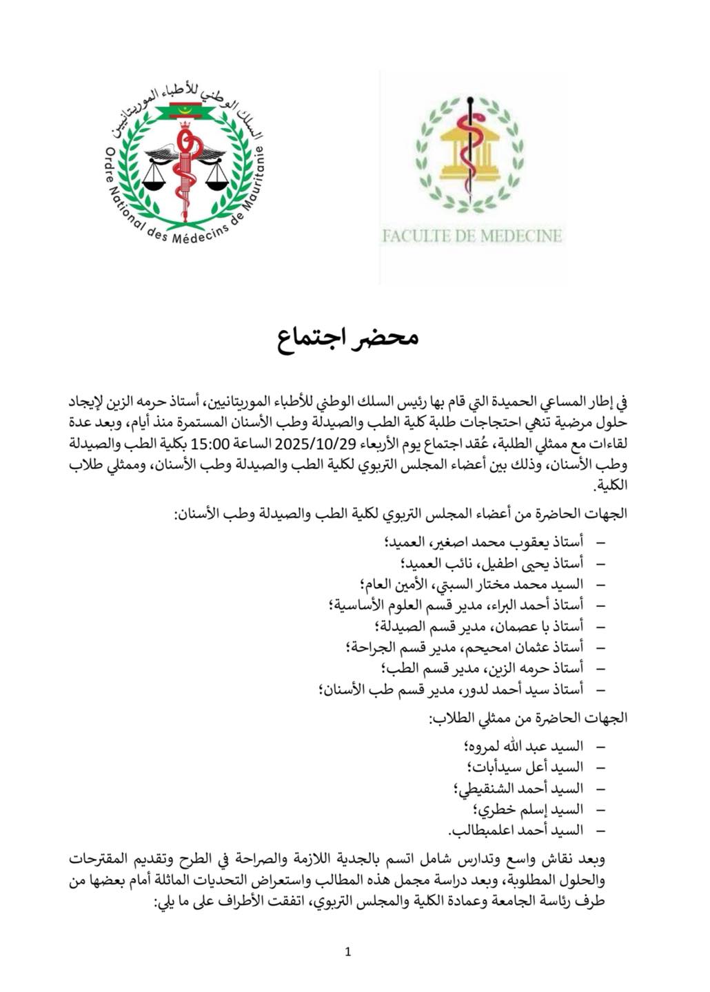 اتفاق ينهي إضراب طلاب كلية الطب في نواكشوط بعد وساطة نقابة الأطباء