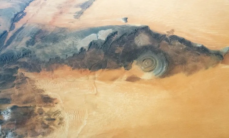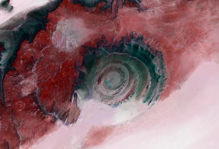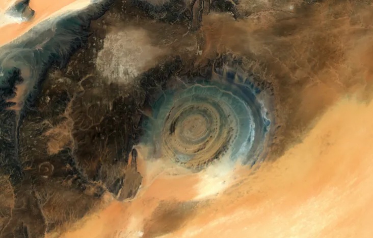 التقطت مهمة كوبرنيكوس سنتينل-2 مشهدا لأكثر الظواهر الجيولوجية إدهاشا في الصحراء الكبرى، وهي بنية الريشات في إقليم آدرار شمال موريتانيا. من الفضاء تبدو كأنها "عين" هائلة تحدّق للأعلى، من بحر من الرمال الذهبية، ولذلك اشتهرت باسم عين الصحراء أو عين أفريقيا.