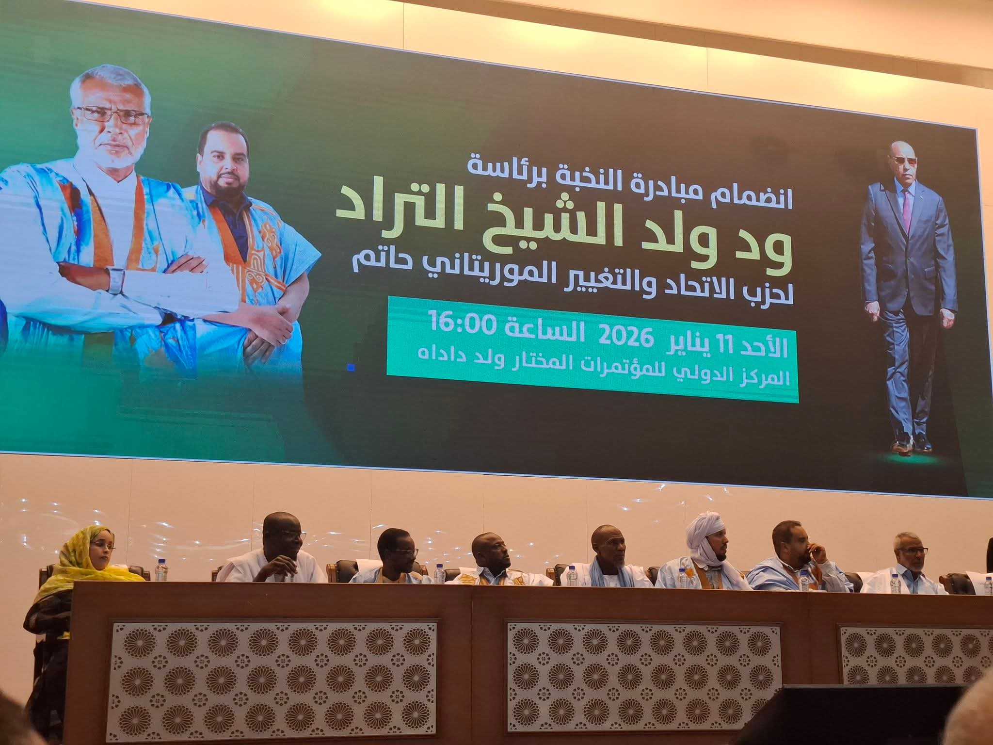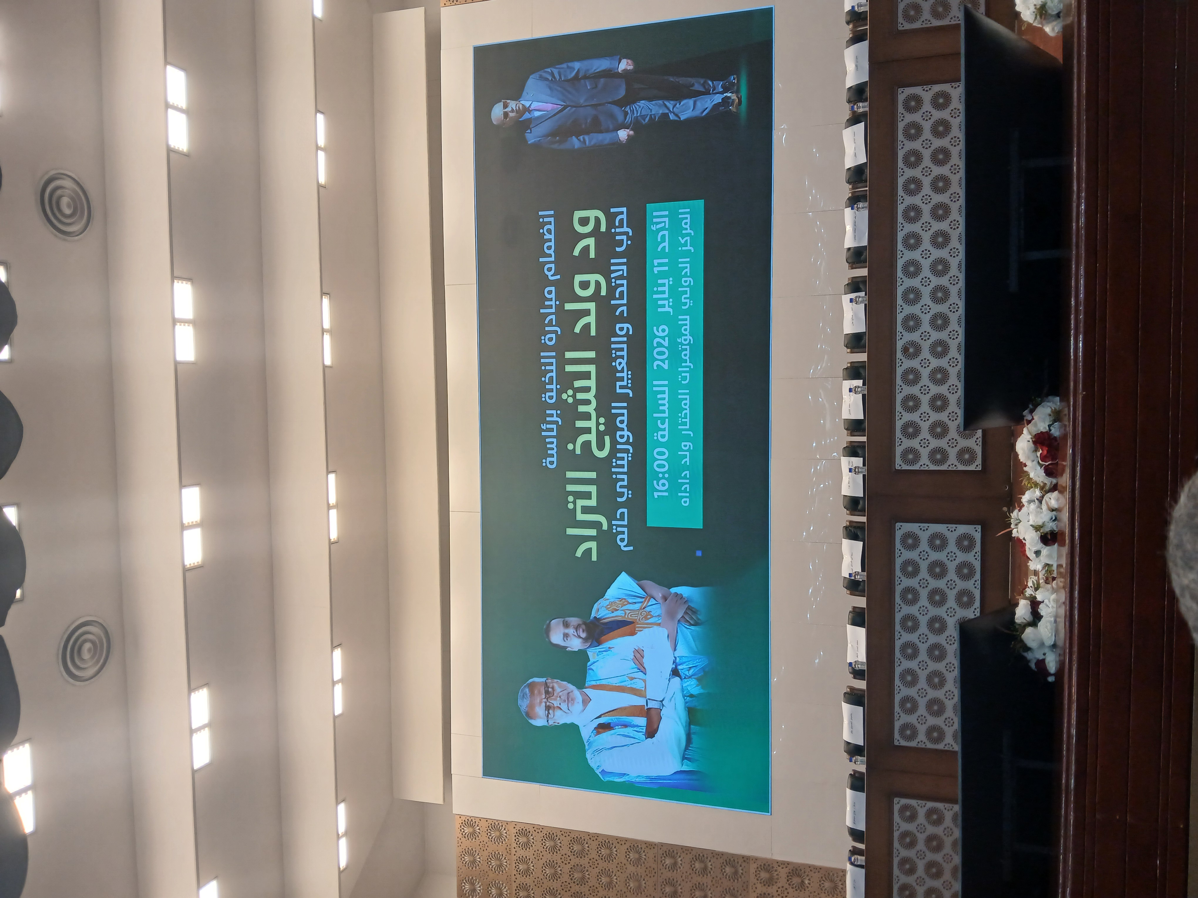 شهد قصر المؤتمرات، مساء اليوم الأحد 11 يناير 2026، حشدًا جماهيريًا كبيرًا، تزامنًا مع إعلان مبادرة النخبة، برئاسة السيد ودو ولد الشيخ التراد، انضمامها رسميًا إلى حزب الاتحاد والتغيير الموريتاني (حاتم)، في خطوة وُصفت بالمهمة على الساحة السياسية الوطنية.