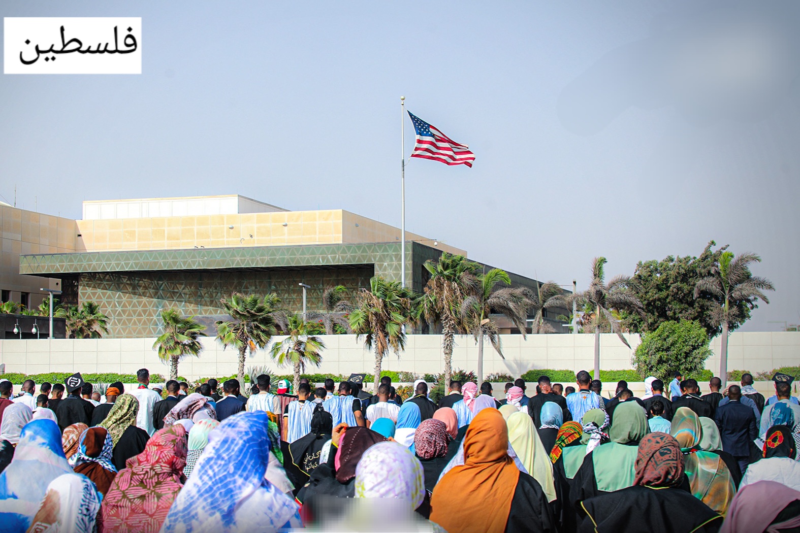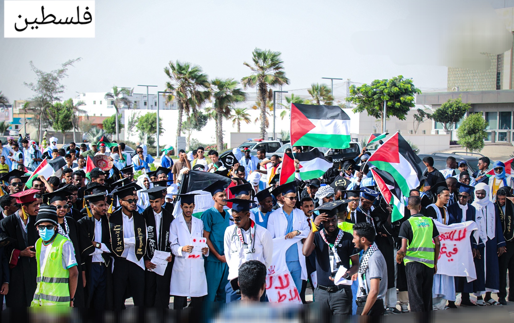 نظم العشرات من خريجي الجامعات الموريتانية، يوم الجمعة الماضي، وقفة احتجاجية أمام السفارة الأمريكية في نواكشوط، تضامناً مع الشعب الفلسطيني في غزة، ورفضاً للحصار والاعتداءات الإسرائيلية المستمرة.