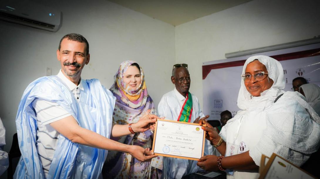 رعت وزيرة التجارة والسياحة السيدة زينب بنت أحمدناه، يرافقها وزير الثقافة السيد الحسين ولد أمدو، يوم الأحد في مدينة كيهيدي، حفل تخريج دفعة جديدة من المكونين في مجال الفندقة.
