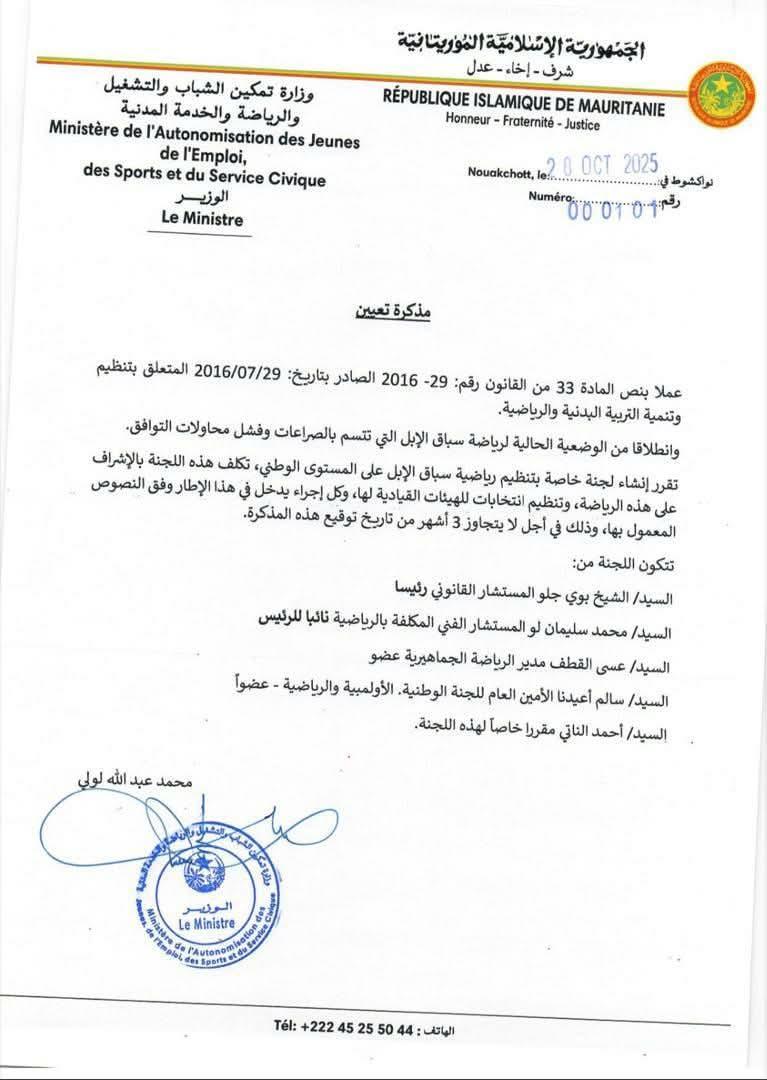 أعلنت وزارة تمكين الشباب والخدمة المدنية والرياضة عن تشكيل لجنة خاصة مهمتها تنظيم رياضة سباق الإبل على المستوى الوطني.