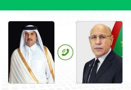 أجرى فخامة الرئيس محمد ولد الشيخ الغزواني، مساء اليوم الثلاثاء، اتصالاً هاتفياً بصاحب السمو الأمير تميم بن حمد آل ثاني، أمير دولة قطر الشقيقة.