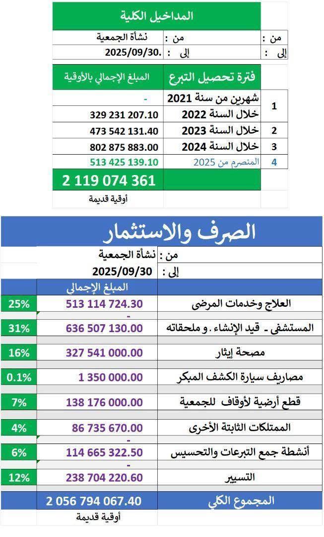 وبلغ إجمالي التبرعات التي تلقتها الجمعية خلال هذه الفترة 2,119,074,361 أوقية قديمة، في حين بلغت إجمالي المصروفات 2,056,794,067.40 أوقية قديمة.