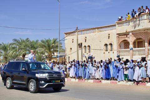 حظي فخامة الرئيس محمد ولد الشيخ الغزواني، صباح اليوم، باستقبال شعبي حاشد في بلدية بنگو بولاية الحوض الشرقي، حيث اصطف المئات من المواطنين على طول الطريق الرئيسي للمدينة، رافعين الأعلام الوطنية ولافتات الترحيب.