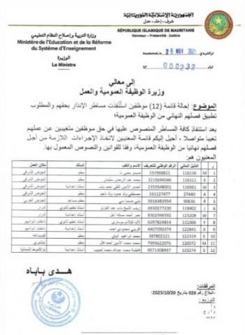 جاء ذلك في رسالة رسمية وجهتها الوزارة بتاريخ 25 نوفمبر 2025، أوضحت فيها أن قرار الفصل يأتي بعد استنفاذ جميع مراحل الإنذار الإداري وفق المساطر القانونية المقررة.